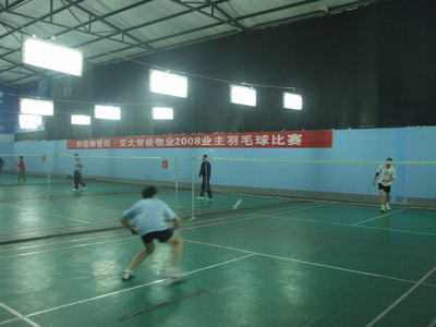 和谐暖风吹遍物管社区,运动旋律奏响健康生活。在这严寒的冬季,成都市和谐物管周活动的暖风吹进了交大智能社区,在交大智能物业管理有限公司的组织下,和谐物管周·交大智能物业2008业主羽毛球比赛于2008年12月15日晚在九天运动时空俱乐部拉开了序幕。此次活动在交大智能物业提供物业服务的智能1-9期业主中开展,吸引了广大羽毛球运动爱好者的热情参与。活动分为老年组、青年组两个组别,竞赛项目为混和双打,共有72户业主报名参加,组合成36队选手。每组成员都是交大智能的业主,分别来自于交大智能的不同小区的不同家庭成员,大家在一起参赛、一起拼搏、一起享受运动带来的乐趣。时至寒冷的冬季可比赛场馆里,暖意融融,大家尽情挥洒着汗水、球拍挥舞着运动的活力,大家配合默契、共同进退,此时成绩已经不再重要,通过比赛业主们从不认识到认识,从不了解到了解,切磋、分享着共同的爱好,增进了彼此的友益,赛后大家还相互留着联系的方式。看到业主们开心、和谐的场景,交大智能物业的组织者们都露出了会心的微笑。