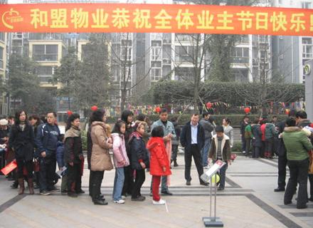 为了欢庆春节的来临,该公司特地为业主朋友举办了一场迎春游园活动。一年一度的新春游园活动是和盟物业公司传统的社区活动。虽是传统节目,可通过和盟物业人精心的创新,今年更是别有一番风味:猜灯谜、夹球赛跑、吊酒瓶,转魔方、顶碗接力、摸牛鼻子、滚铁环、小区拔河……