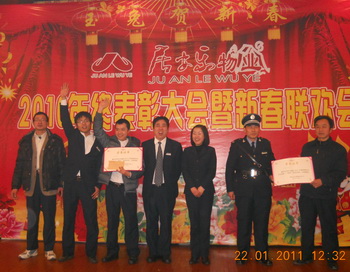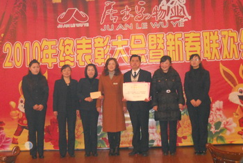 大会上,总经理助理李琴宣读关于表彰2010年下半年亮点员工以及获得优秀团队、物业经营年度最佳贡献奖项目的通知,在热烈的掌声中,张岚总经理及职能部门负责人为16名获奖员工和3个获奖部门颁发奖状和奖品,希望他们在今后的工作中再接再接,创造更辉煌的成绩。作在一线的获奖员工代表分别联系实际做了交流发言。