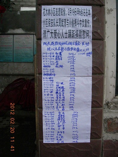 又讯 “2.19”周斌清勇斗盗贼事件发生当日,花木林业主委员会立即召开募捐会议,业主委员会成员纷纷带头捐款。