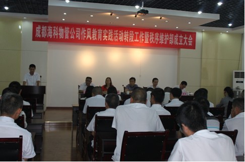 2012年7月19日,海科物管公司召开作风教育实践活动转段工作暨公司秩序维护部成立大会,公司党政领导班子全体成员、公司全体党员、入党积极分子和中层管理干部、各物管项目一线骨干员工参加了会议。