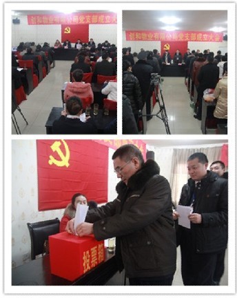 1月9日上午,成都市创和物业有限公司党支部成立大会在杜鹃庭园隆重举行,吉福社区党委书记刘晓庆、纪委书记李朝阳及公司总经理文映忠等出席会议,创和物业30多名正式党员和30多名非党员管理人员参加会议。