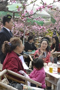9点出发,10点一刻到达预定的农家乐,在阳光的照射下满山桃花显得格外的灿烂。受到灿烂春色的感染,丽都舞蹈队的美女们情不自禁地跳起了热情的舞蹈,吸引了正巧到桃花山取景的成都电视台、与华西都市报记者驻足。
