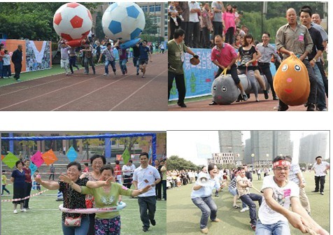 合能九大社区联动比赛,千名业主报名参加,“运动员”年龄从3岁到70岁不等,从一下车就感受了欢乐运动会的“趣味”和“激情”,迎宾的喜洋洋和米老鼠,青春洋溢的拉拉队员夹道欢迎,搞怪的气球小丑更是吸引了小朋友们的眼球,代表每个社区的升空大彩球迎风飘扬,给业主朋友们制造了“步步有惊喜,欢乐趣多多” 的感受。
