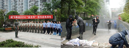 为响应成都市物业管理协会“业主年”活动,加强生活区汛期发生突发性洪水事件应急处置管理体系建设,提高生活区应对和处置发生突发性洪水事件及自然灾害抗风险能力,5月22日下午,成飞物业在盛畅园小区举办防洪实战应急演练。