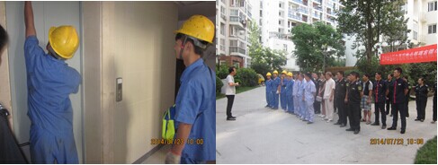 为提升物业公司和电梯维保公司应对电梯困人的应急救援能力,正确引导业主正确应对电梯故障,践行“2014业主年”主题活动。2014年7月23日上午在东山国际新城D区, 四川华怡科尔物业公司与电梯维保公司一起联合举办了“快速反应,正确应对”电梯困人演练活动。华怡科尔物业公司秩序维护部经理田凤山、DE区项目经理梁茂安、各小区安保人员、前台接待人员、工程人员和几位业主代表一起参与了此次演练活动。