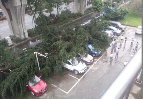 此次暴雨袭击,共造成崇兴小区雪松、香樟等树木折断、倒塌26棵,办公区停车棚损毁,15号办公楼门卫室侧墙损坏,落水管损坏若干。(李娜 褥建玲)