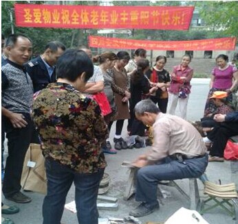 为了让服务小区的所有老年群体度过一个欢快的重阳节,结合“业主年”活动要求,圣爱物业在其服务的鸿运星城小区、郫县瑞景茗城小区开展了内容丰富的尊老爱老便民活动。
