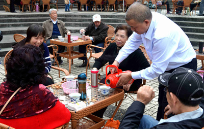 在当日的庆祝活动中,老人们有的嗑着瓜子聊着天,有的打麻将,有的打扑克……在植物园清新的空气中欢声笑语一片,幸福的微笑在每一位老人的脸上荡漾。到了中午就餐时间,老人们一起团坐一起,互相自我介绍,从不相识到相识,加深了邻里友情。社区领导与物业公司项目负责人刘经理分别代表社区、业委会及物业公司对老人们表示了节日的问候,并和老人们共同举杯庆祝,在祝福和感谢声中,我们的活动达到高潮。