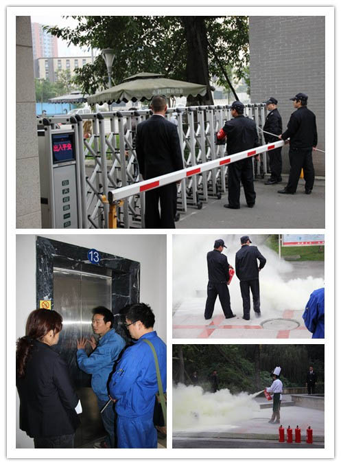 此次演练包括治安防范、电梯困人、消防灭火三个部分。在治安演练中,门岗人员认真履职,在派出所民警配合下成功制止了一起装修工人找不到装修负责人索要拖欠工资时,到小区找业主索要工资事件;在电梯困人演练中,救援人员接到报警后及时赶到、处置得当,成功将被困人员安全救出;在灭火演练中,巡逻队员发现火情后及时报警、正确处置,后援人员及时赶到成功扑灭大火。演练完后并请派出所所长、电梯维修单位工作人员及消防维保单位工作人员给大家讲解正确的使用方法及注意事项,然后邀请业主代表及其他工作人员参与演练。