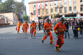 公司组织并联合成华消防大队、急救中心等单位,于2014年11月11日下午在成都舞台成功举行了“2014东郊记忆消防演练”。成华公安分局、安检局、成华消防大队、集团保卫处等领导进行现场指导,跳蹬河街办、辖区派出所、园区各单位及商家、新闻实业公司、新闻培训中心等共计800余人参与了观摩、实操练习。由东郊记忆员工组成的义务消防队完成火灾突发事件的实战演练,以预设的灭火、疏散、救援、引导等分组,对火情预警、报警,火灾扑救、人员疏散、救援引导等进行了全方位的演练,演示了火灾突发时的应急处置和自救互救措施,成华消防大队也出动了官兵和消防车辆参与了演练,同时还向在场群众演示了灭火器、消防水带等消防常用器材的使用方法。