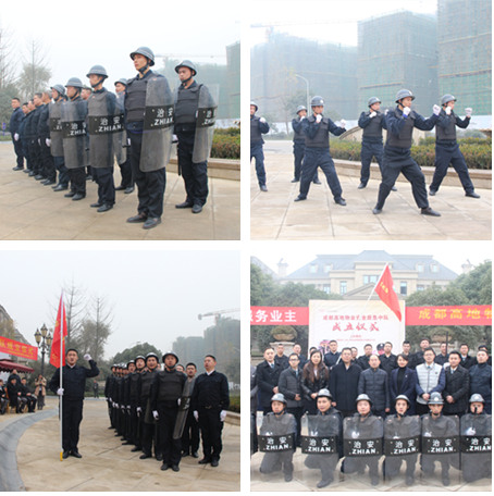 最后的授旗仪式中,全体队员们以斗志昂扬的精神,立下了铁血誓言:“服从命令,听从指挥,服务社会,服务业主。”