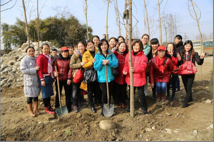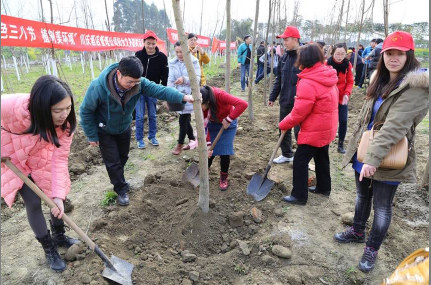 二○一五年三月七日,致美物业管理公司员工们来到郫县唐昌镇开展了“学雷锋、庆三八、植树造林”的活动。