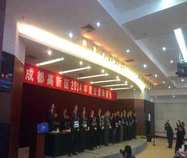 成都高新区政府于2015年3月18日在高新区管委会隆重召开了2014年度优秀企业表彰大会,会上高新区工委及管委会对于在2014年中做出突出贡献的企业及个人进行了表彰。