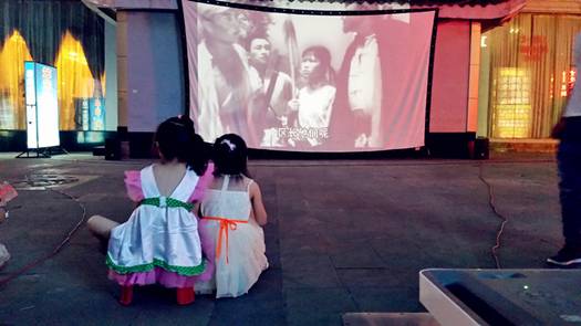 由于之前安排播放的儿童片《超能陆战队》收到放映设备的限制,系统无法正常播放,临时改成了爱国教育影片《地道战》,不到八点,整个放映现场已经围满了许多观众,不管是“大儿童”还是小儿童,大家都纷纷谈论着,有说有笑,整个现场好不热闹,晚上八点影片正式开播,画面刚一出现,着实让大家眼前一亮,仿佛再次回到了童年的记忆。虽然现场道具及屏幕布置有点简陋,影片也临时进行了更改,但丝毫没有减少大家对坝坝电影的热情和关注,一幕幕熟悉的画面再次从眼前浮现,触动了不少长辈们的回忆,不经意间还能零星的听到有些父母带着孩子边看边讲述:“如何提高爱国热情,告诉孩子们我们今天的幸福生活来之不易,要懂得珍惜,要学会感恩,长大了一定要多为祖国做贡献,回报社会”等等正能量的言语,由于影片题材的原因,放映现场气氛非常活跃,笑声不断,就连平日里调皮的孩子们也乖乖的依偎在父母身边,享受这部爱国教育影片所带来的开心与快乐!如今,看坝坝电影已成为一种怀旧、忆昔的时尚。对于“大儿童”来说,是最美妙的回忆;对于小儿童来说,是最朦胧、最新鲜的体验---炊烟尚未散尽,鸡鸭正蹒跚入笼,暮色渐渐降临,乡村路上一扫平日的宁静。而当一品天下小区浸上夏日烈烈炎热之时,永远尘封在记忆深处的一抹记忆不再干枯,使得业主心情非常激动。