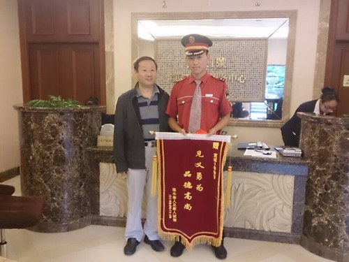 9月28日上午,落水老人家属向服务中心送来了一面锦旗及三个礼包,并当面向第一时间跳入湖中对老人施救的秩序维护员韩中林表示感谢。韩中林坚决而不失委婉地谢绝了业主的礼包,坚定地说:我相信无论是谁第一时间赶到现场,都会像我这样做的,因为这是我们物业人应尽的职责和义务!