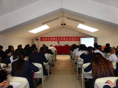 10月22日,成都花园物业公司召开《安全法》和《消防法》知识培训会,成都市安监局庄处长和青羊消防刘中队长到公司为80名主管以上管理人员进行了安全和消防知识培训。