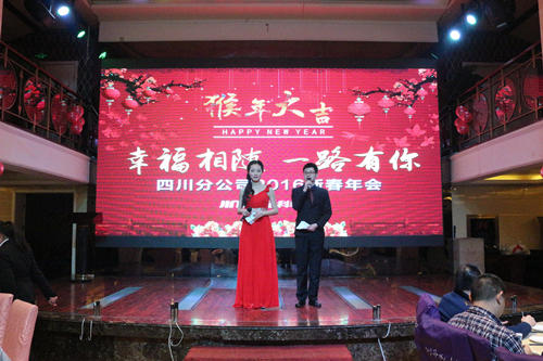 “玉羊奔腾欢报丰年,金猴兴旺喜迎新岁”。春节,作为中国传统节日洋溢着中华民族特有的红色喜庆。在新春佳节来临之际,为增强团队凝聚力,丰富员工娱乐文化生活,更表达公司对员工节日的关怀与问候,四川分公司于2月2日在四方阁酒楼举办“幸福相随·一路有你”2016年新春年会。