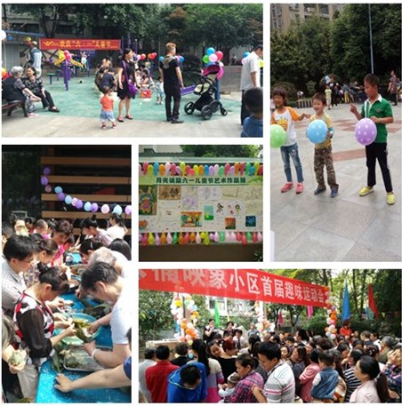 为了让孩子们感受节日快乐,忠信从上到下都纷纷行动了起来:公司总部和各分公司为12周岁及以下的行政类员工子女准备了精美礼品,并特许放假半天让员工陪伴孩子过六一,让孩子感受家庭关爱。成电花园项目举办了“全家总动员、六一乐翻天”亲子体验活动,设置有“萝卜蹲”、你比我猜、夹乒乓球等互动游戏,让小朋友们与家长互动玩得不亦乐乎,还组办了“我家在成电——宝贝才艺秀”活动,孩子们演唱儿歌、表演舞蹈、朗诵诗歌,还有精彩的“缤纷童话”儿童画展,展现了孩子们多种才艺,享受着节日的快乐和幸福。双楠映象项目举办了首届趣味运动会,精心准备了定点投篮、亲子活动、“二人三足”、“保龄球”、双人跳绳、传递乒乓球、夹玻璃球和包粽子活动,得到了业主们的积极响应,活动现场热闹又温馨,加油声、欢笑声不断。熙城国际项目为孩子们准备了“赶猪”、跳绳、飞镖、你比我猜等许多有趣的小游戏。这些游戏活动各项目均设立了众多的奖励方式,通过奖券兑换、分设奖项、发放奖状和小礼品等,让参与活动的业主都得到了一份额外的惊喜。