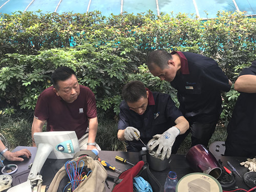 下午,民乐园物业服务中心提前布置维修场地,组织安排设施设备维护人员以及相应的工作人员在现场为业主服务。18点,业主带上需维修的小家电陆续到达现场,吹风机、豆浆机、烧水壶、电风扇、吸尘器、电磁炉等,并跟设备维护人员说明小家电问题。设备维护人员先是检测家电问题,再是针对问题进行维修,维修完成后,对家电进行试用,并将维修结果反馈给各业主。在维修过程中,民乐园物业服务中心现场工作人员主动与业主交流,并向业主讲解夏季小家电使用方法及维护小贴士。