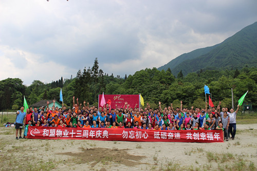 为庆祝和盟物业成立13周年,5月17日至18日,和盟物业组织137名骨干员工前往都江堰虹口,参加为期两天的团队拓展训练。