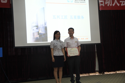 启动会以全体参会人员歌唱《快乐五兴》拉开序幕,歌声振奋激昂。会上首先由公司项目运营部总监关于客户满意度要求与措施》的讲述分别从客户满意度调查的意义、回望2016年满意度、如何提升客户满意度、2017年满意度目标四个方面进行详细阐述。其次,由五兴公司副总经理详细分析客户服务工作及公司品质提升举措的成果,并对今后工作的重点与方向做了安排。随后,由公司党总支书记四川省首届物业职业技能竞赛中脱颖而出的匠人何光明颁发荣誉证书。最后,五兴公司顾问对2017上半年工作以及本次大会进行总结。