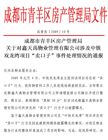 上一条:成都市房产管理局关于聘请和谐物管社会监督员的公告 下一条:关于对德昌行物业管理顾问有限公司擅自撤离青羊区天鹅星座项目处理情况的通报