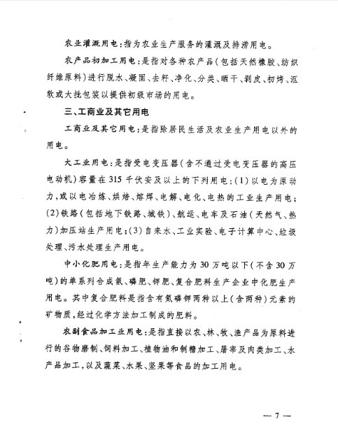 (三)工商业及其它用电价格,是指除居民生活及农业生产用电以外的用电价格。