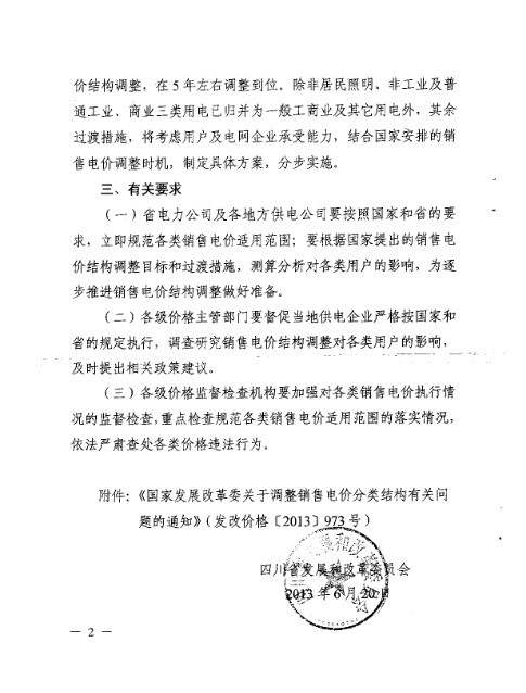 (一)将销售电价由现行主要依据行业、用途分类,逐步调整为以用电负荷特性为主分类,逐步建立结构清晰、比价合理、繁简适当的销售电价分类结构体系。