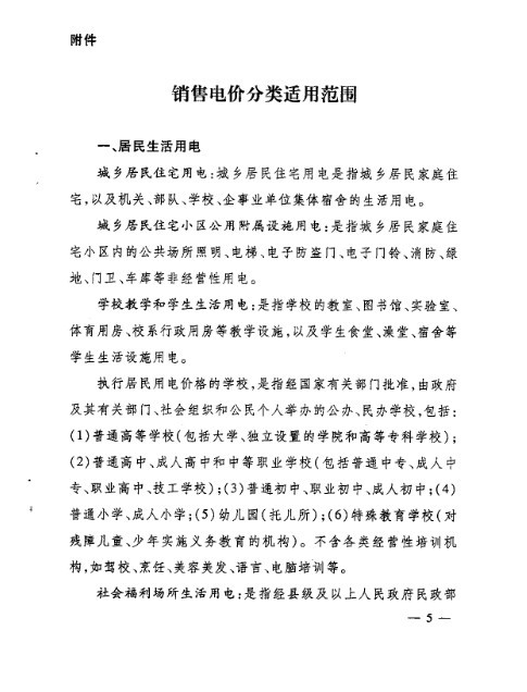 附件:销售电价分类适用范围