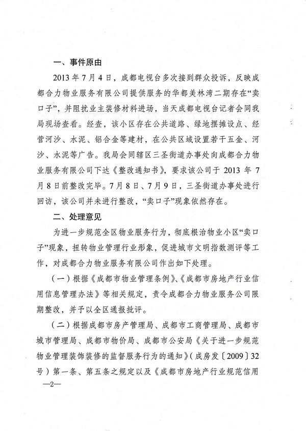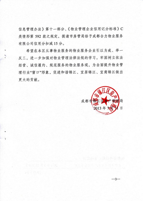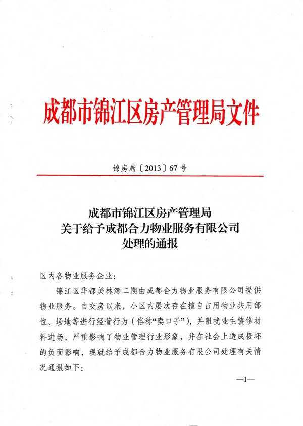 上一条:关于对四川汇德物业服务有限公司批评的通报 下一条:2013年成都市物业管理行业迎接全国城市文明程度指数测评标准细化表