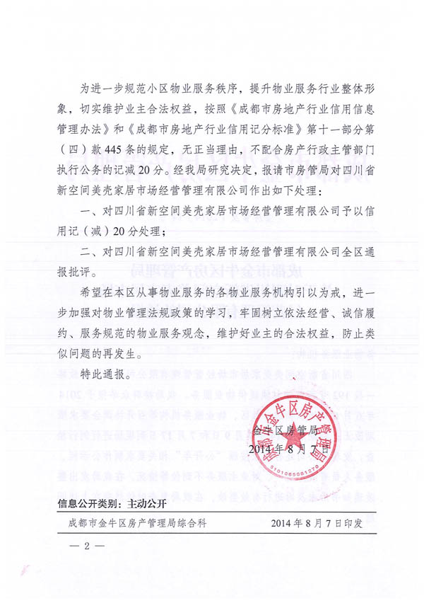 上一条:关于做好2014年物业管理行业迎接全国文明城市复查工作的通知 下一条:关于对成都顺畅物业管理有限公司予以批评的通报