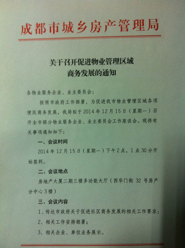 上一条:成都市城乡房产管理局关于进一步做好全市物业管理区域安全防范工作的通知 下一条:关于报送“业主年”主题活动总结报告的通知
