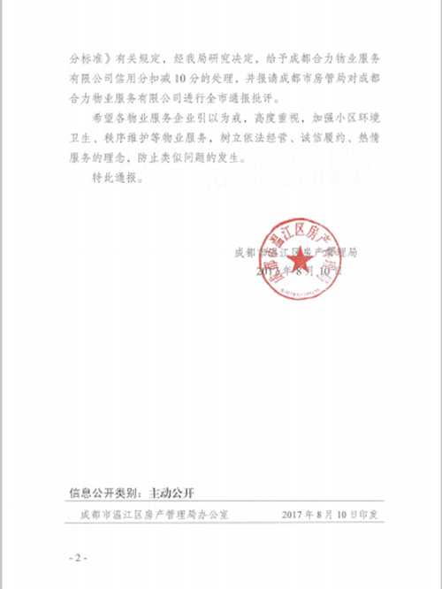 上一条:关于举办物业服务项目经理精英特训营(第四期)的通知 下一条:成都市城乡房产管理局关于物业管理行业做好2017年全国文明城市复查迎检工作的通知