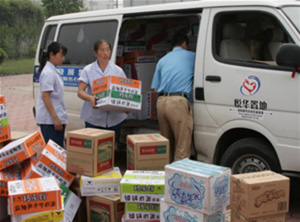 集结每一个小区的力量,为灾区献上一份爱心!——成都物协联手搜房社集网发起赈灾募捐活动正式在成都市财政贸易学校拉开帷幕,活动受到了社会各界的关注,成都市物协自发组织捐赠了饮用水、食品、药品等物资近2万元,鼎瑞物业捐助了200件矿泉水,附近一些热心的老百姓还将自家的棉被拿来,想为灾区人民尽一份绵薄之力。
