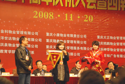 成都市物业管理协会巫庆敏副秘书长接受联谊会会旗。