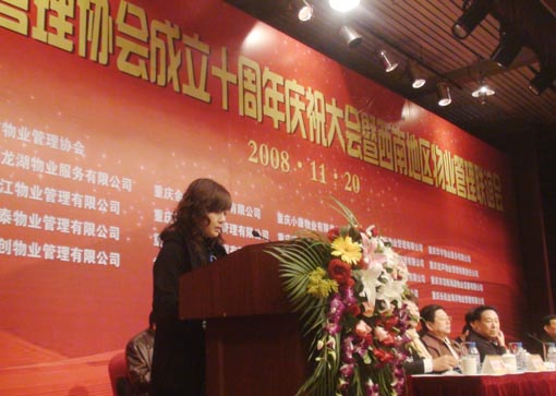 20日上午,在重庆物业管理协会成立十周年庆祝大会暨西南地区物业管理联谊会上,重庆市物业管理协会会长罗渝陵女士介绍了重庆物业管理协会走过的十年风雨历程和取得的成绩,各地物业管理行业代表也分别作了精彩发言。会上,巫庆敏副秘书长作为下一届西南物业管理联谊会的轮值单位代表,接受了联谊会会旗,并向与会的相关领导和各兄弟城市物业管理同行发出邀请,热忱欢迎他们来蓉考察、指导和发展。在下午的中国·西南“改革开放30年,城市建设与现代物业”论坛上,各省市物业管理业界专家、学者、企业家、职业经理人纷纷作了精彩发言,其中的真知灼见、新思路、新观点,引来大会阵阵掌声。晚上,各地物业管理行业同仁欢聚一堂,观赏重庆两江夜景,在“五省六方物业管理行业红歌会”上,大家纵情高歌,共同演绎了大家耳熟能详的红色经典。用最响亮的红歌为物业管理行业喝彩,用最和谐的声音为物业管理行业祝福。