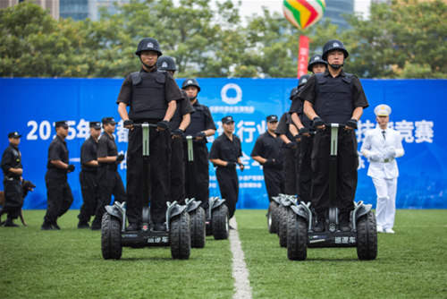 下午1点30分,运动场上彩旗飘展、十六支“安全年”活动空飘标语围绕在赛场周围,各参赛队伍在场上整齐列队。随着竞赛演练总指挥一声令下,活动的第一部分秩序维护技能竞赛拉开序幕,盛大而精彩的分列式正式开始,由700名秩序维护队员组成的16支方队沿着跑道依次行进。他们队列整齐、步伐有力、口号震天、英姿飒爽,充分展现出我市物业人昂扬向上的精神风貌,赢得在场观众阵阵掌声。