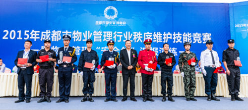 最后,蜀信、嘉善联队力压群雄,获得了2015年成都市物业管理行业秩序维护技能竞赛单元一等奖;四川嘉宝集团和嘉诚新悦物业获得二等奖;合达联行、中粮物业和量力企业管理获得三等奖;保安公司、中航物业、利丰物业、世纪城物业、忠信物业、银杏物业、华昌物业、艾明物业、民兴物业、金房物业获得了本次竞赛优秀奖。成飞物业、四川嘉宝集团、中粮物业、民兴物业以及蜀信、嘉善联队获得物业管理“安全年”汇报表演先进单位。本次秩序维护技能竞赛和汇报演练活动是我市物业管理行业深入贯彻落实“安全年”主题活动,全面提高物业管理安全工作水平的重要内容,也是对我市物业管理“安全年”主题活动成效和秩序维护工作水平的一次成果检验。本次活动得到了华玮物业、忠信物业、万科物业、华昌物业、欧菲物业、龙湖物业、嘉善商务、成都置信培训学校等单位的大力支持。