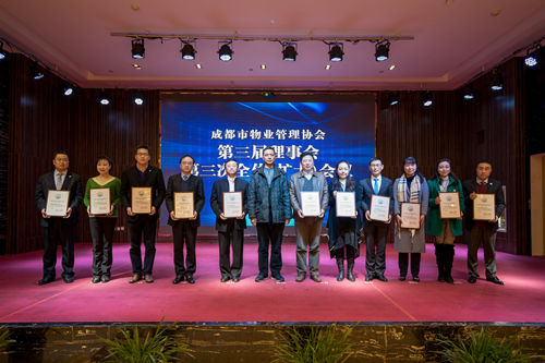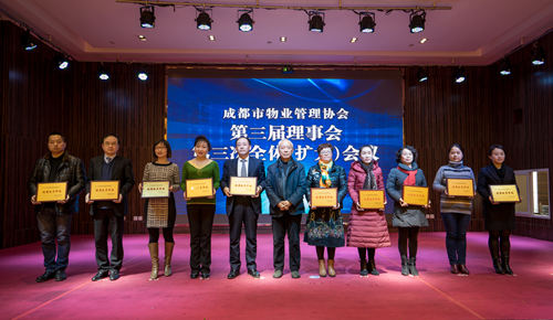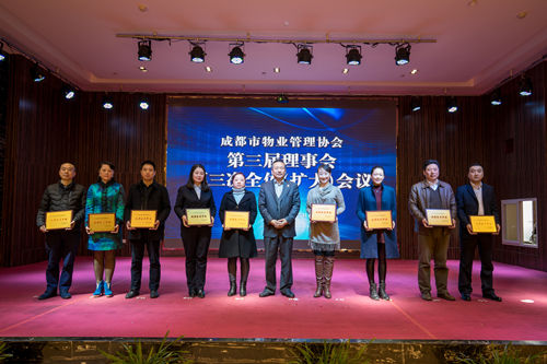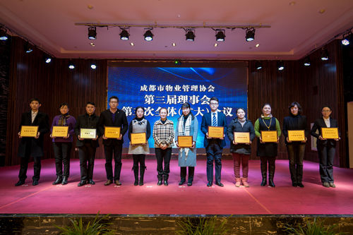 会议还对2015年度优秀会员和2015年成都市物业服务品牌企业进行了表彰,成都市清华坊楼宇服务有限责任公司等72家会员获“2015年度优秀会员”称号;保利物业管理有限公司成都分公司等11家企业获“成都市物业服务品牌企业”称号;对四川嘉宝资产管理集团股份有限公司等29家复核合格的品牌企业,保留其称号。