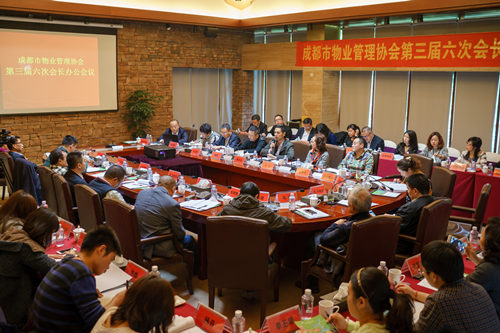 3月31日,成都市物业管理协会第三届六次会长办公会议在成都市蒲江县保利石象湖规划馆召开。成都市城乡房产管理局物业管理处处长袁庆华、副处长姜鲁东应邀出席会议。会议由闻涛会长主持,协会监事会列席会议。