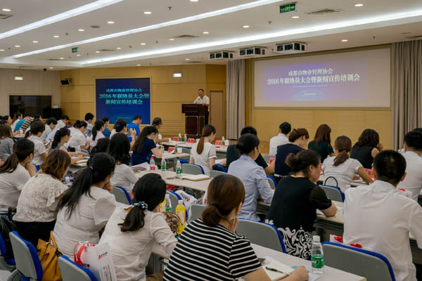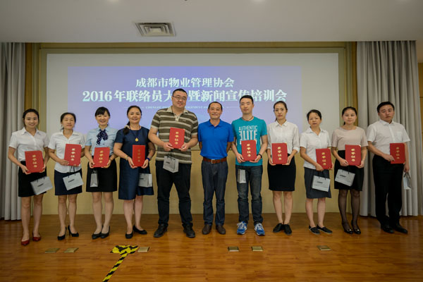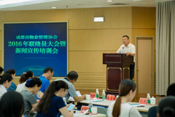 9月2日下午,成都市物业管理协会在房产分中心三楼多功能会议室召开2016年联络员大会暨新闻宣传培训会,对30位获得2016年“优秀联络员”称号的同志进行了表彰,并开展了媒体公关、新闻写作和摄影培训。成都市城乡房产管理局物业管理处副处长姜鲁东、新闻宣传办公室主任胡建华应邀出席会议并讲话。协会会长闻涛、常务副会长兼秘书长巫庆敏出席会议,200余家会员单位的联络员参加了会议。会议由协会副秘书长苟强主持。
