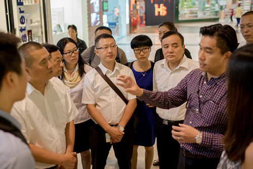 新加坡来福士广场高级物业经理Paw与代表团交流经验做法