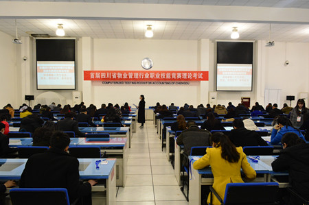 3月16日下午,首届四川省物业管理行业职业技能竞赛理论知识考核在成都工职院财贸校区会计无纸化考试考场进行,本场考试按工种分为2场,其中物业管理员150人参考,电工147人参考。